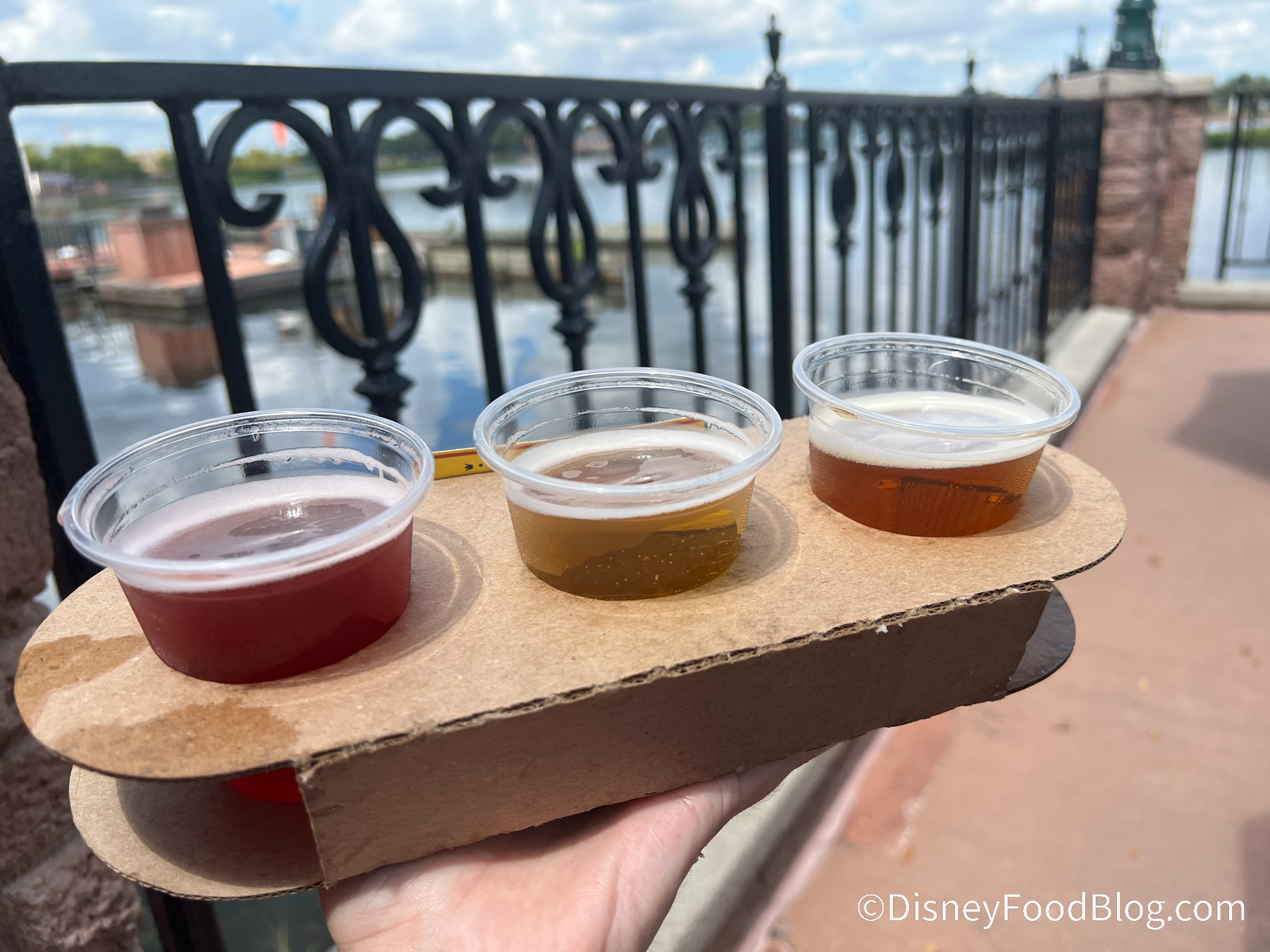 I appreciate them giving me my money’s worth of beer, but maybe consider bringing a friend along if you’d like to grab food and drinks. EPCOT food booths don’t offer food trays, and everything comes in small cups and multiple plates, making it difficult to grab it all, especially if you need to walk a little to find a table.