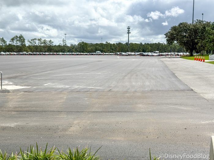We’re not certain how long this resurfacing of the parking lot could take, or if EPCOT plans to work on other sections of the parking lot after they’ve completed this one. However, if you’re planning on visiting over the next few weeks, we certainly think it’s a good idea to plan for this to be ongoing and leave yourself a little extra time to plan accordingly.