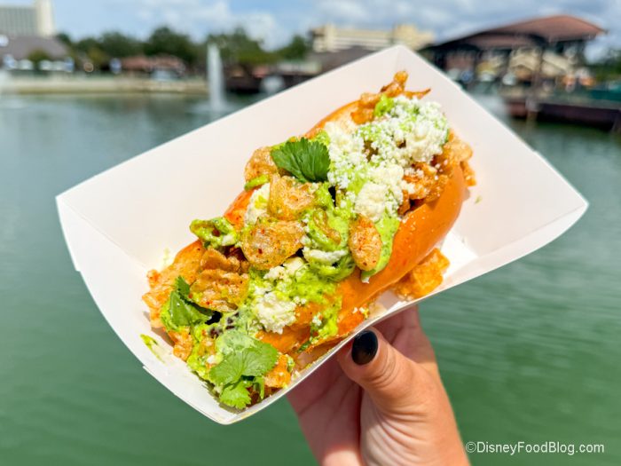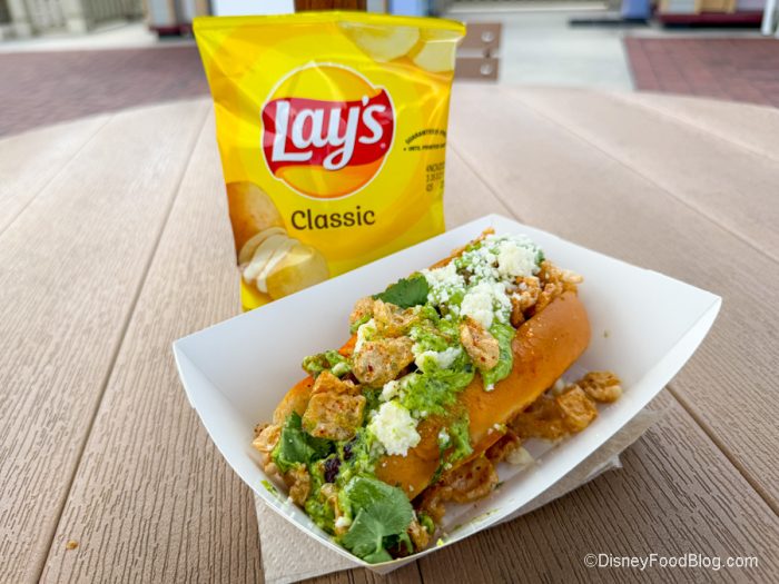 But if you’re looking for a different kind of hot dog in Disney World, head on over to Disney Springs. This one does NOT disappoint.