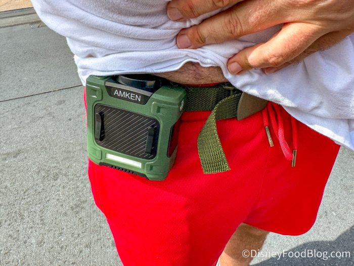 We’ve tried lots of different ways to keep cool in the parks — cooling towels, cooling fans, and handheld fans, but with as hot as it is, we decided to kick it up a notch. We tried a Waist Fan, and let’s just say — this thing is POWERFUL!