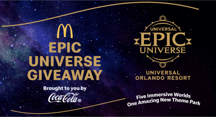 If you’ve been waiting for your chance to visit for one reason or another, now may be your chance! McDonald’s and Coca-Cola are hosting a giveaway where one lucky winner will earn the chance at a Universal Orlando hotel and theme park experience or Universal Epic Universe tickets.