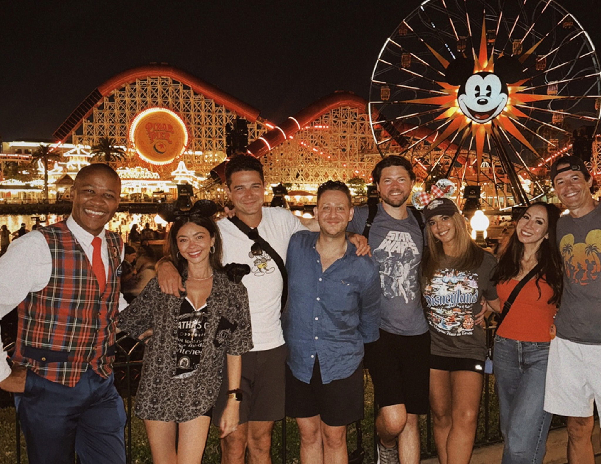 Sarah Hyland, who played Hayley on the long-running Modern Family sitcom (which famously featured a Disneyland episode), visited the Disneyland Resort along with her husband, DJ, and former Bachelorette contestant Wells Adams and others.
