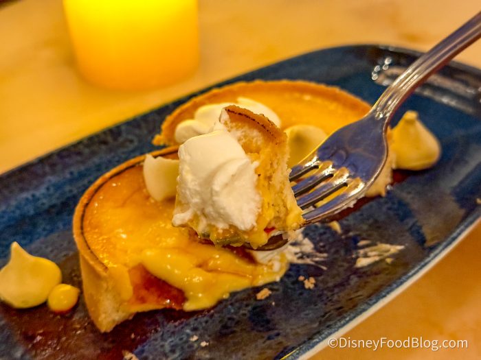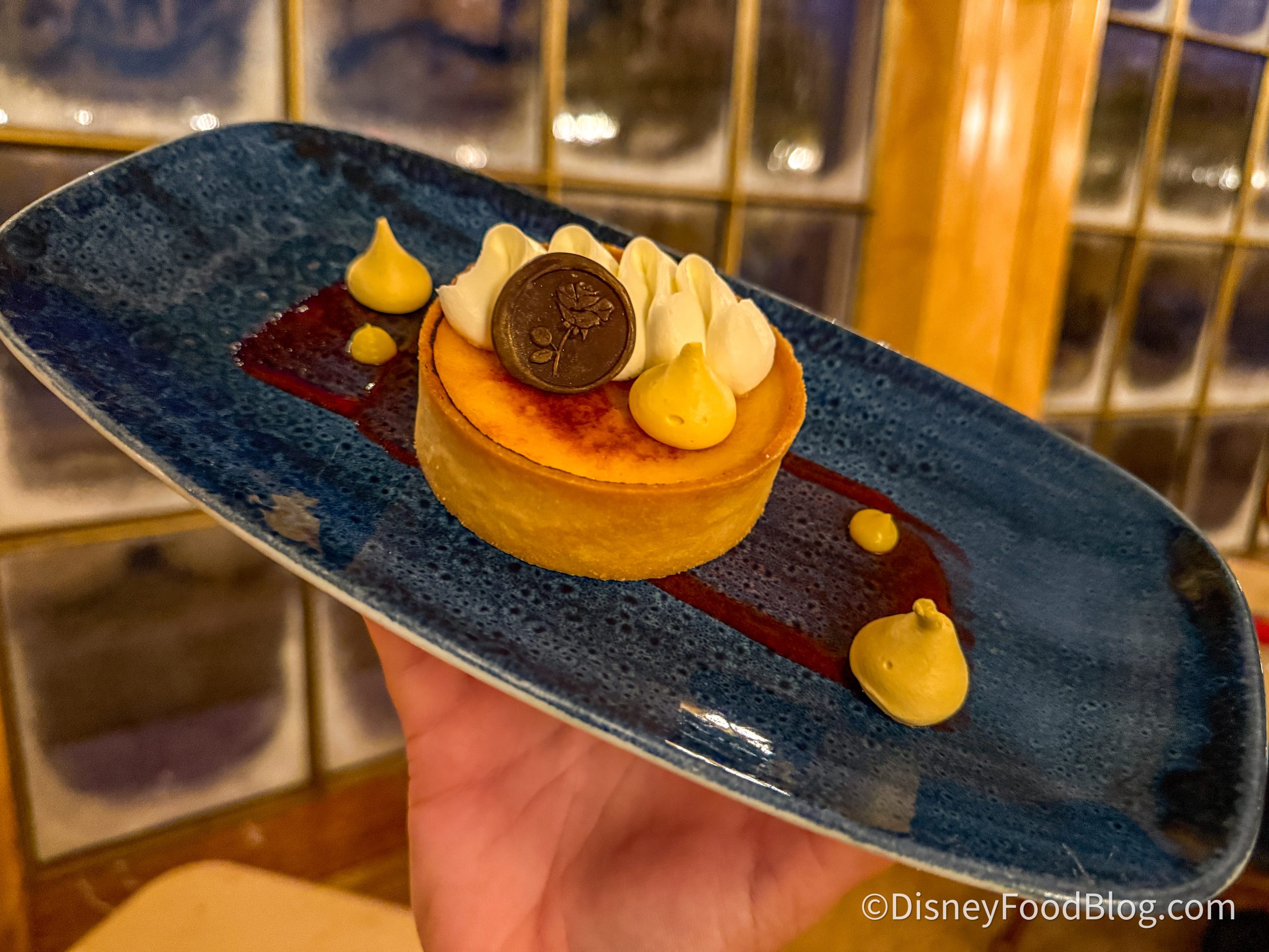In 2025, some major menu changes hit Be Our Guest Restaurant, and from that list, we got the “worst” item — the Crème Brûlée Tart. This is made with orange custard, passion fruit meringue, and chantilly cream, and we were mainly upset with it because it replaced the old dessert trio!