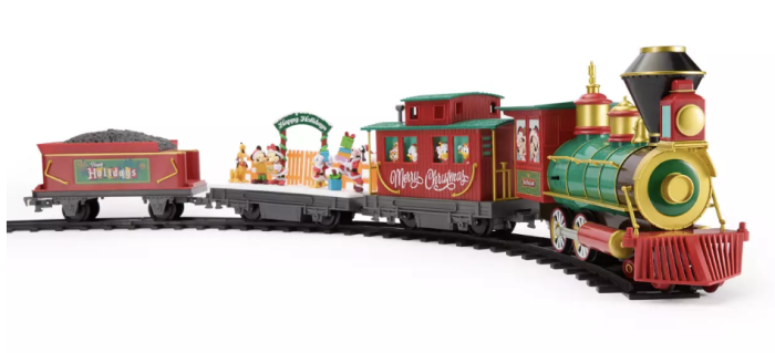 You can also pre-order the new Mickey Mouse and Friends Christmas Train Set, which is perfect for those who are looking for a train to go around their tree, or just love playing with model trains! You’ll see all your favorite classic Disney pals on the first three cars, and then on the coal car, a sign wishes you Happy Holidays.