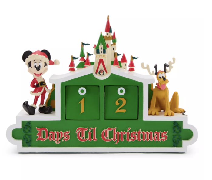 If you love looking at something each day and counting down to the holiday, you’ll adore the new Santa Mickey Mouse and Pluto Holiday Fantasyland Castle Countdown! Mickey Mouse is dressed as Santa on one side, while Pluto has reindeer ears on the other, and in the middle is none other than the iconic castle. You can change out the day as each one passes to count down!