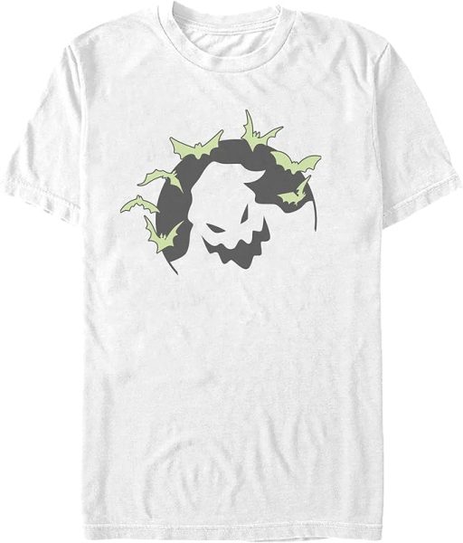 Love a more classic shirt? Look no further than the Oogie Boogie Moon Bats T-Shirt! This one comes in white and has Oogie Boogie peeking out right in the middle, surrounded by green bats. Perfect for the spooky season!