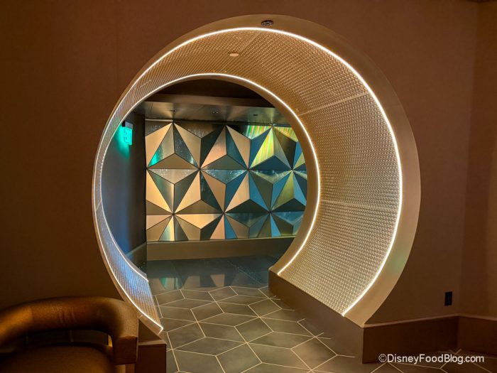 Themed to EPCOT’s Spaceship Earth, this lounge emphasizes the attraction’s “stories, shapes, and enduring legacy” and has been decorated with rich textures and warm metallic tones for a “mysterious and elegant intimacy.”