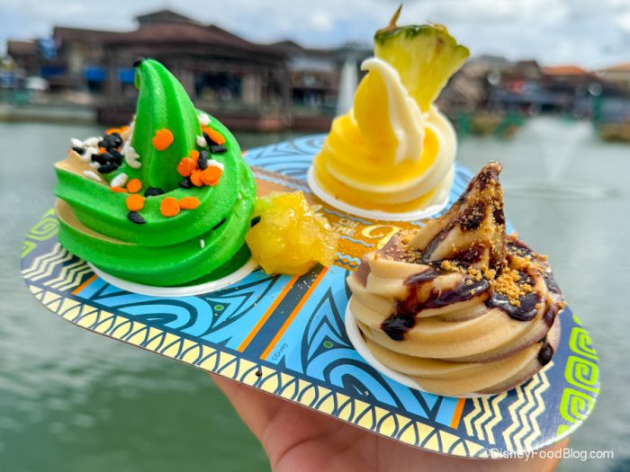 Swirls on the Water offers DOLE Whip samplers that change seasonally, and the Halloween-inspired sampler is a must-try. Costing $7.99, this treat comes with three DOLE Whips that are locked into a brightly designed container.