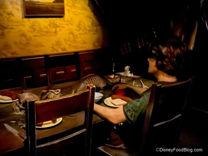 Meanwhile, Van Helsing’s granddaughter is in the queue area asking us to get her Wolfman’s head (sure, we’ll get right on that, ma’am). Wolfman was far more grotesque than how he appears at Epic Universe.