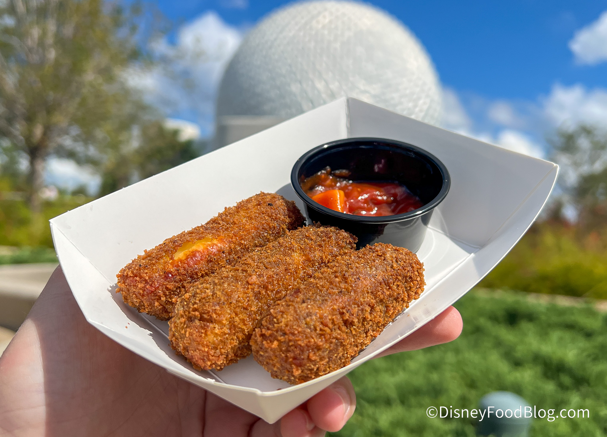 There’s a reason this booth is called Festival FAVORITES because the menu items here are ones that have been popular at multiple EPCOT festivals — and for good reason. Everything here is still solid, and if you’ve got kids, they’ll appreciate the Frozen S’mores while adults can indulge in the Irish Milk Shake. We also think the fried cheese is a good addition to the menu here.