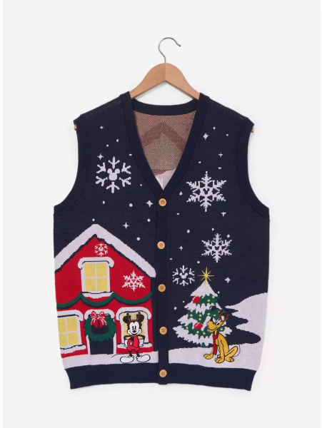 We’ll be living in this sweater vest come December! Mickey and Pluto are all ready for the holidays, and you will be too once you get your new vest.
