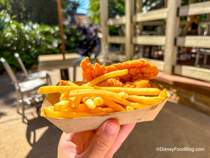 The chicken tasted like all the chicken fingers you’ll find around Disney World — delicious! They were crispy, savory, and they remain one of our favorite comfort foods at the park. We also felt like we got a decent portion for it being a kids’ meal (but we still could have had more chicken fingers)!