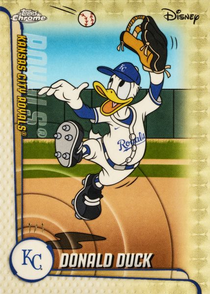 September 24th will see the release of the new 2025 Disney Topps Chrome trading card set, a 200-card base series that will include well-known Disney and Pixar animated and live action characters, “rare authentic autograph cards of some of the greatest live action and voice talent from the epic history of Disney and Pixar”, sketch cards, and a subset of cards themed to the national pastime.