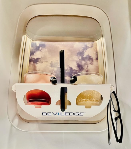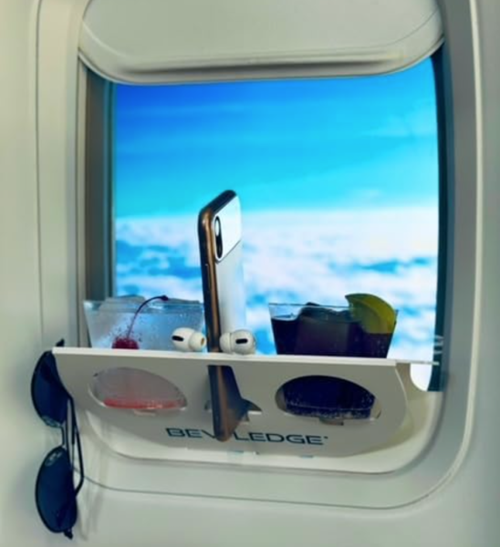 Okay, now THIS is interesting. What is it? How does it work? Don’t worry — we’ve got this all figured out. The BEVLEDGE is a window organization station that sticks to the interior window of a commercial plane. If you’ve got the coveted window seat, this can give you a little extra storage space!