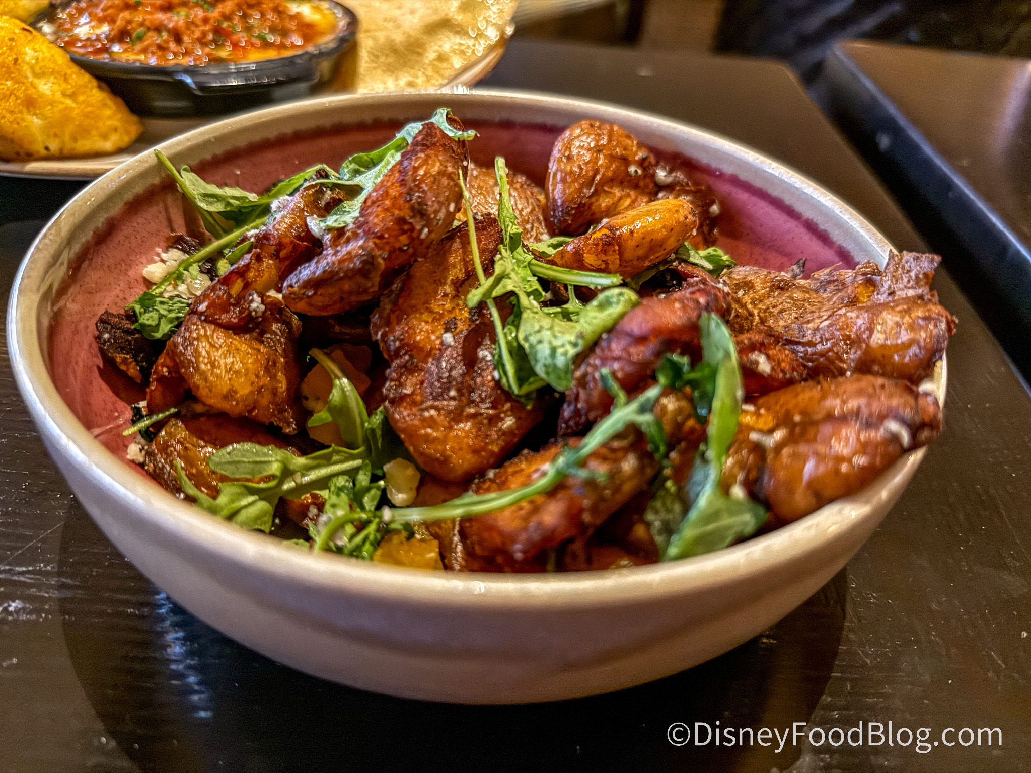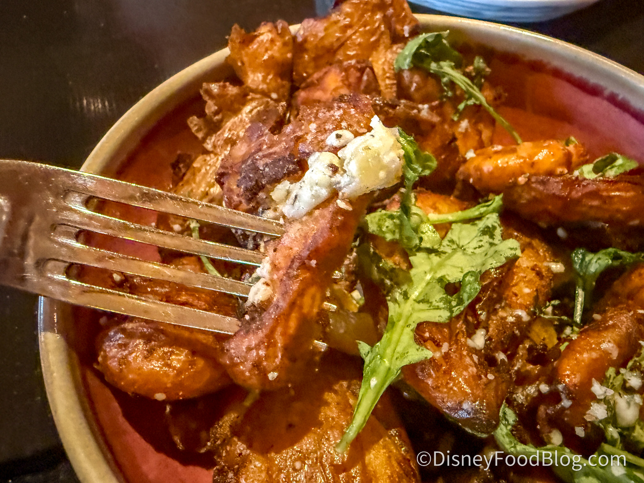 Who doesn’t love a bowl of crispy potatoes? These chips had a perfect crispy outside and a creamy inside and were fried to perfection. The blue cheese comes in tiny crumbles, so it’s not overwhelming, and the arugula provides a peppery taste. We had to search for the dried, chopped apricots, but once we found them, they added a fun pop of sweetness. We were originally expecting something similar to loaded fries with melted cheese, but this was more chips with a crumble of topping, which was a fun take on the dish.