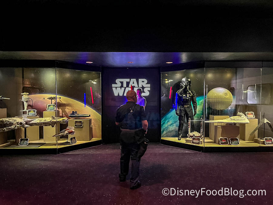 Star Wars Launch Bay featured three immersive galleries that showcased various props and displays. The Celebration Gallery showed off iconic ships from the saga, Celebration Hallway displayed large-scale replicas of props with cool movie murals, and the Preview Gallery gave you a look at replica props, artifacts, and memorabilia from the most recent movies and shows.