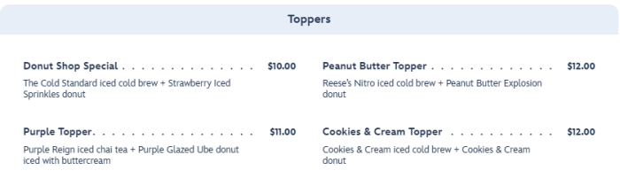 And you can even add a topper to your drink! These are drinks that include a donut inserted onto the straw. Coffee and a donut!