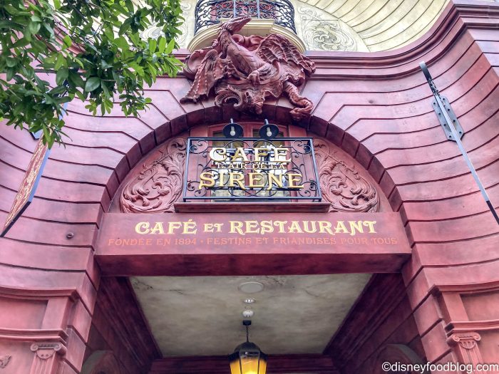 Cafe L’air de la Sirene feels like a real Parisian restaurant, even if it sits in the middle of a theme park. There’s outdoor dining, like you would find at any authentic French cafe, but there’s also indoor dining in a gorgeous interior that makes it feel so very, VERY French. The restaurant also offers Mobile Order, so ordering your food is super easy.