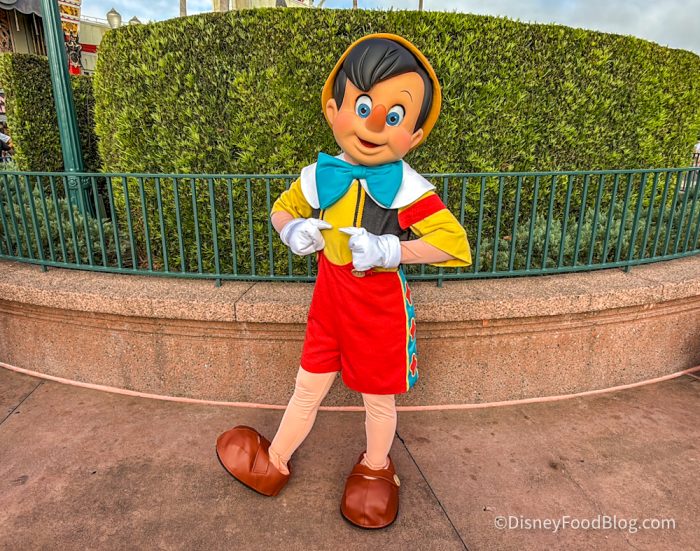 First up, you can find Pinocchio hanging out by Center Stage! He was looking great this morning!