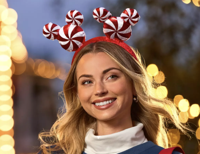 If you want the perfect ears to wear this winter that will match the Loungefly bag, the Mickey Mouse Peppermint Swirl Ear Headband is calling your name. The band itself is red, and the “ears” are two Mickey Mouse peppermint icons, with that same red and white pattern on the front and back. While these do match directly with the bag, they’re also great to wear on their own during the holiday season.