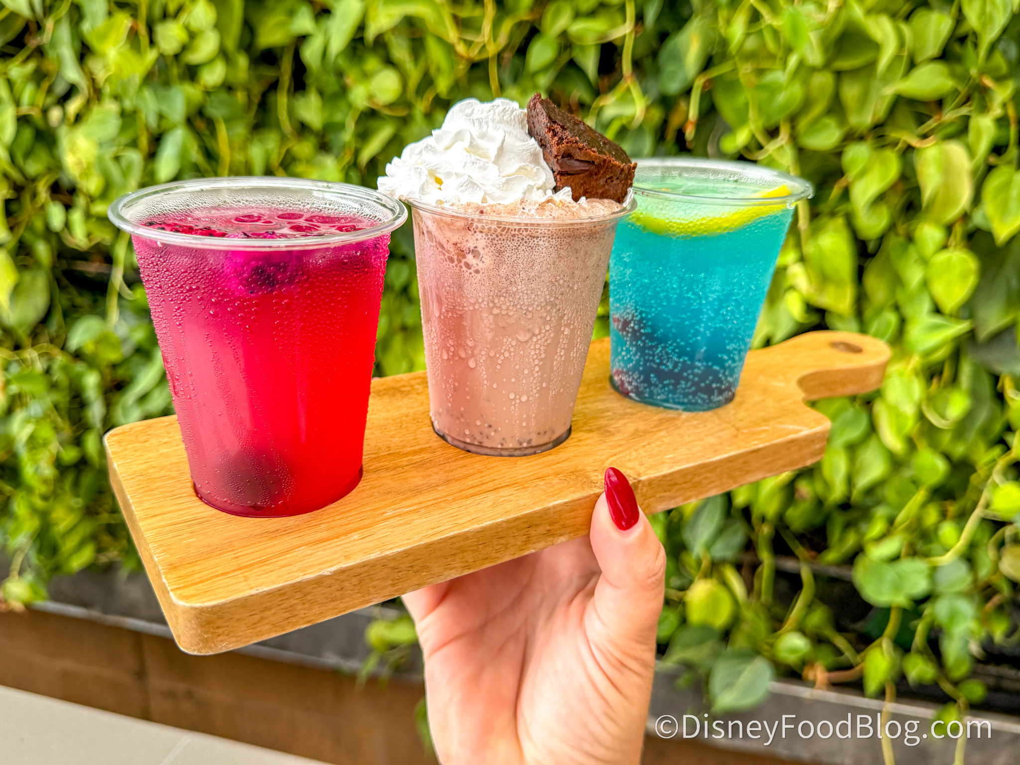We love a drink flight, and we’ve tried almost all of them across Disney World. From wine and beer flights to DOLE Whip, we are always down for a sampler with multiple options to try and review.