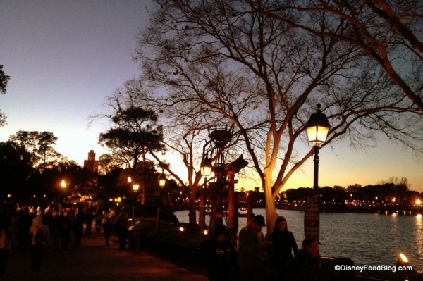 As the sun goes down, there’s a subtle shift that happens and changes the whole vibe at EPCOT. The well-lit paths give way to dimly lit ones, which can be fun and inviting in its own way, but you still have to be careful.