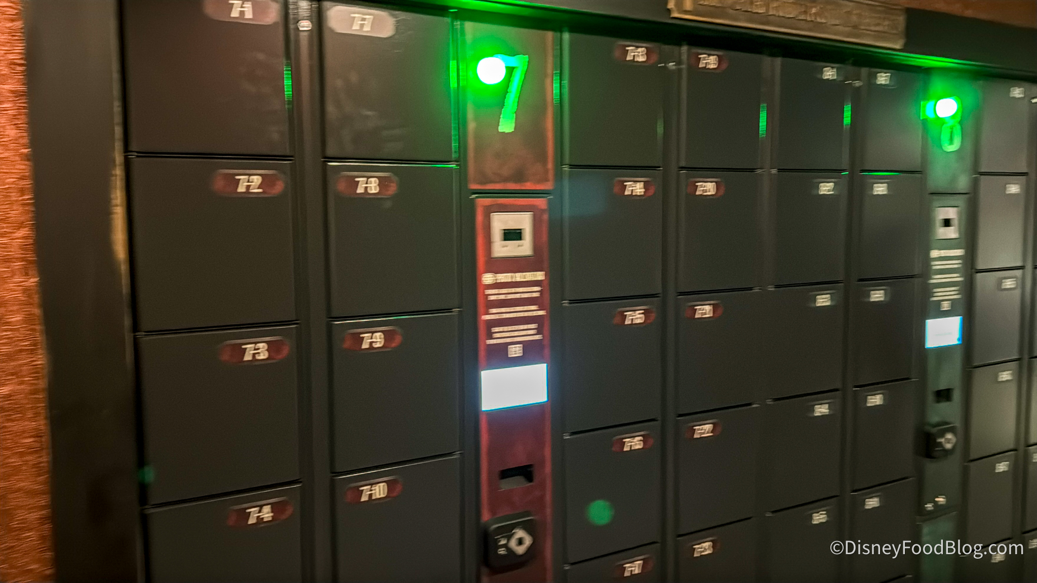 However, these lockers are a little different than some of the other ones you may find in other theme parks for TWO reasons. Number one, they’re mirrored, and this can throw a LOT of people off. What’s a mirrored locker, you may ask? Well, it means that you put your stuff in one side of the locker before you board a ride, and then you retrieve it on the other side of the locker after you get off. This reduces congestion at the lockers, so it’s genius on paper, but we’ve experienced firsthand that it CAN throw you off.