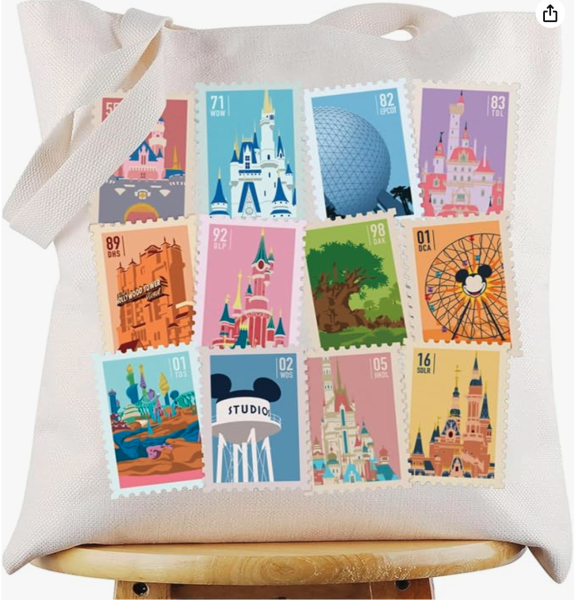 Every Disney park is represented on this Kingdom of Dreams canvas tote! Each stamp includes a picture of a park icon and the year it opened. The details on this tote are really neat. It could make the perfect carry-it-all bag for any Disney lover!