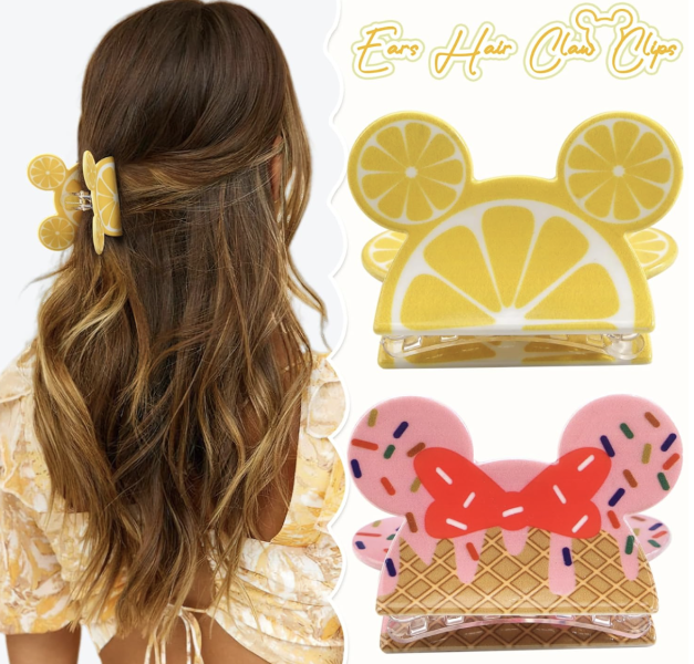 We love this two-pack of Minnie Mouse claw hair clips! This set comes with a lemon-inspired design and a Minnie ice cream cone as well. This set would be perfect for a fun Disney Bound!