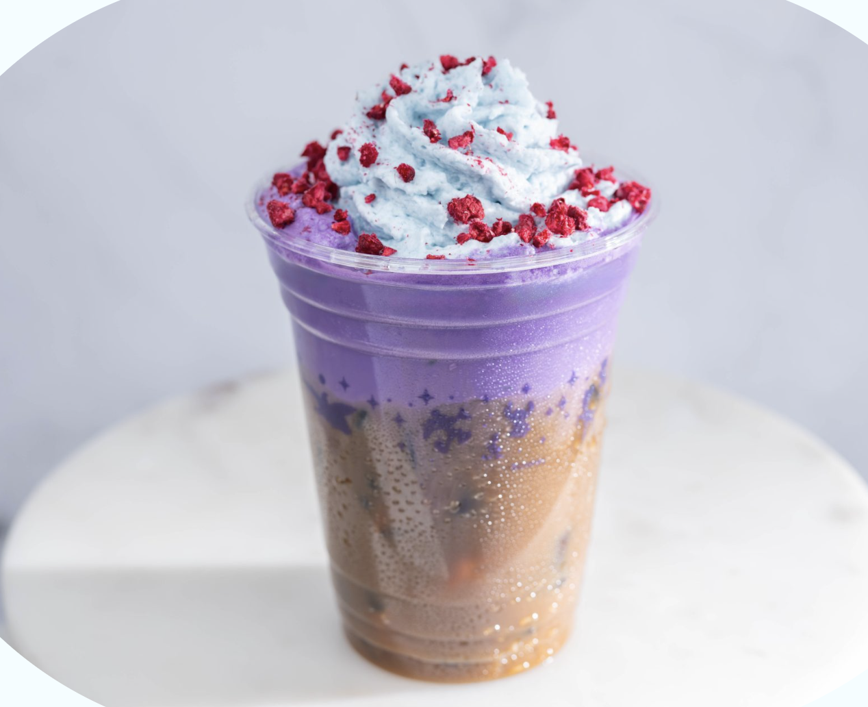 The Ube Cold Brew is one of the flavors at Disney’s Animal Kingdom, and you can grab it at Satu’li Canteen. This is made with Joffrey’s Cold Brew Coffee, ube sweet cream, butterfly pea tea whipped topping, and freeze-dried raspberries.