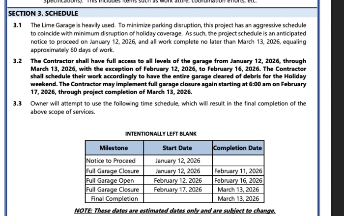 Although it is subject to change, based on documents made public by the CFTOD, it looks like the project will begin on January 12th, 2026, and go through March 13th, 2026.