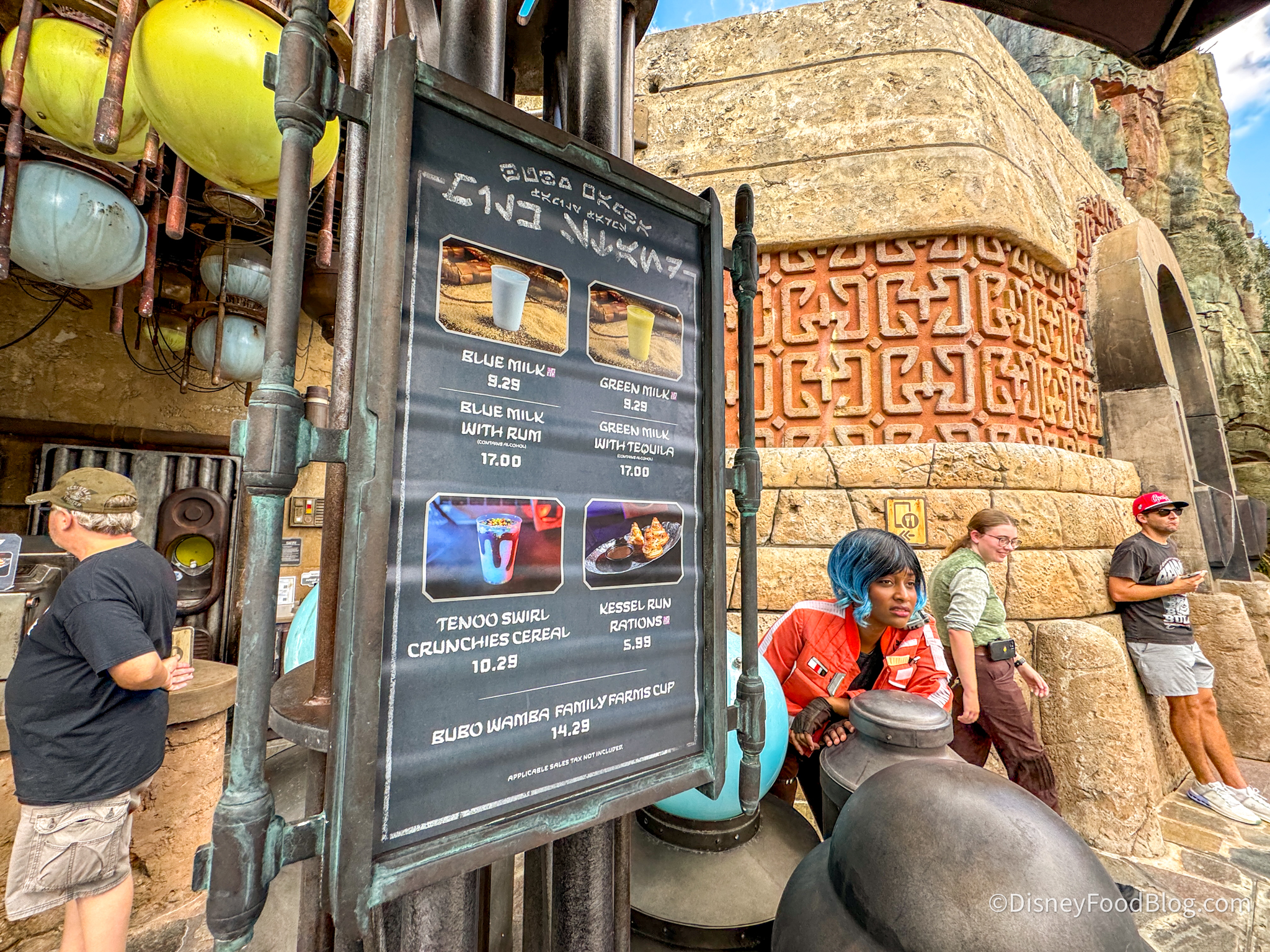 We will admit that sometimes this means we’ve got to try treats that are, for lack of a better word, disappointing (and sometimes just flat-out BLECH, but that’s a rarity), but it’s all worth it for those snacks that totally knock our socks off. Over in Disney’s Hollywood Studios, you’ve likely heard of the famous Blue and Green Milk in Galaxy’s Edge. For some, it’s controversial, but if you’ve tried both and want something a little more unique and elevated, look no further than the Tenoo Swirl Crunchies Cereal.