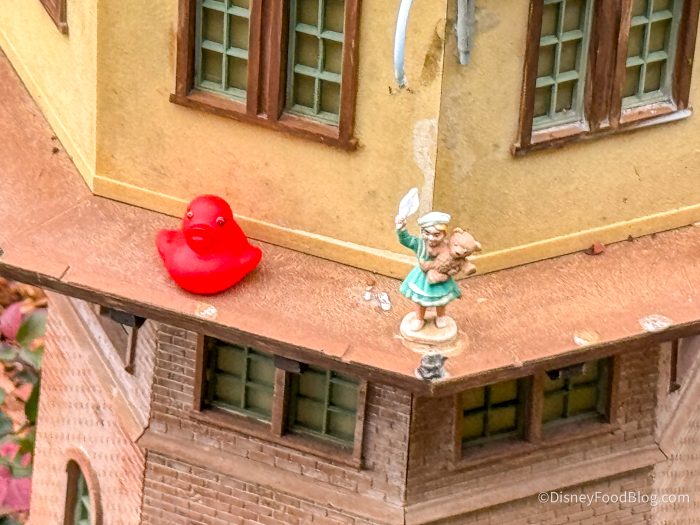 Ending on a lighter note, I had to stop and say hello to Little Suzie, and lo and behold, she has managed to lug a MASSIVE rubber duck to the top of her tower! Seriously, that thing is as big as she is — how did it get up there?! She carried it up all while never dropping her beloved teddy bear.
