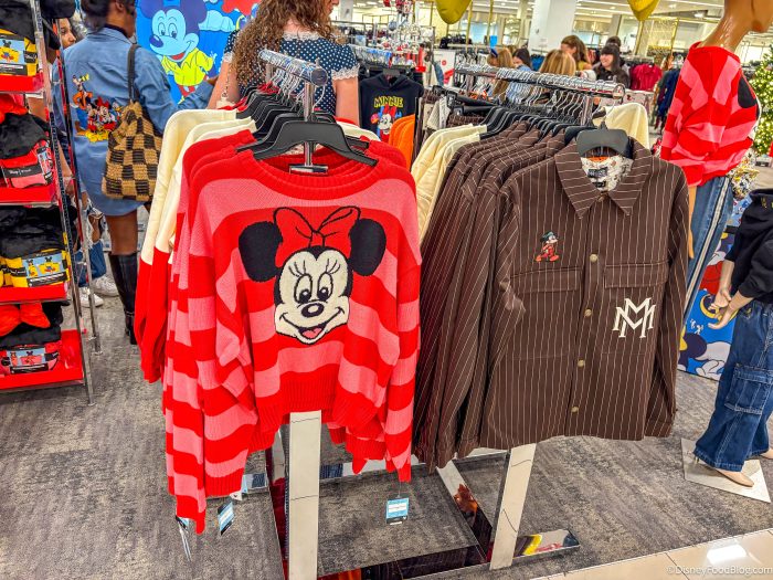There are some stylish picks for adults too, like this Minnie Mouse Sweater or the retro Mickey Mouse button-up.
