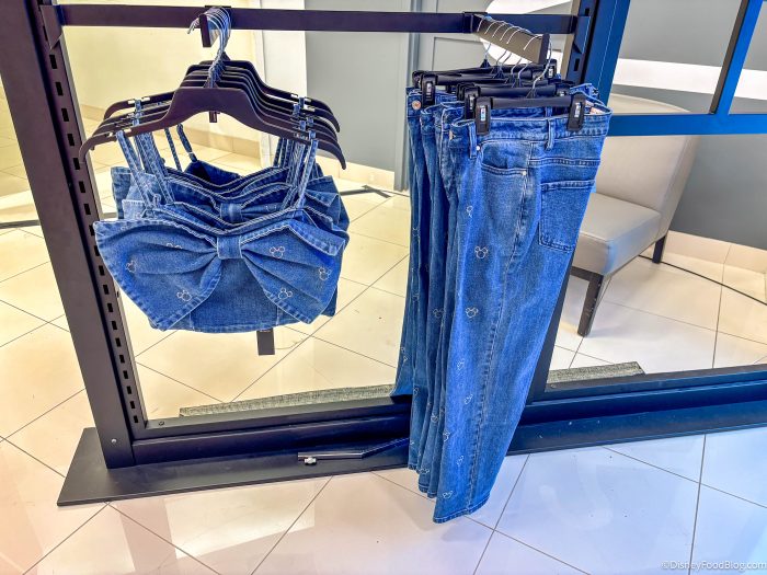 We also loved this subtle Disney denim set — the top has a bow just like Minnie’s and both the shirt and pants are covered in little Minnie heads.