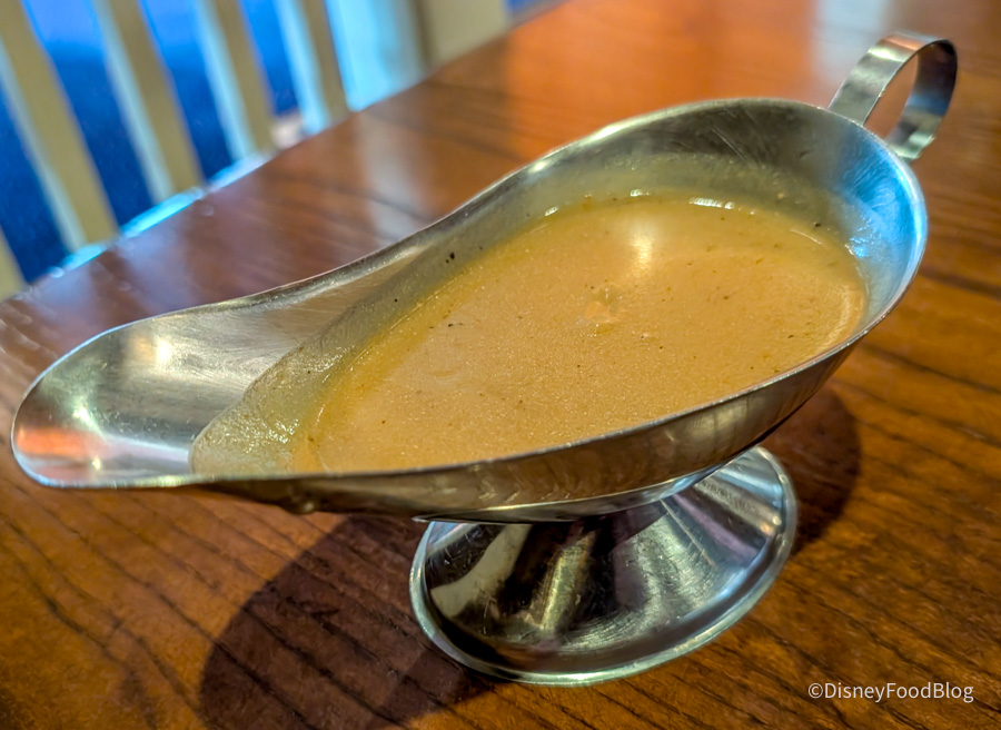 Then there’s the gravy, which we’re always tempted to drink right out of the boat…because y’all, it’s that good. We pour it all over our plate. It’s a classic, flavorful gravy, which is exactly what you want with this meal.