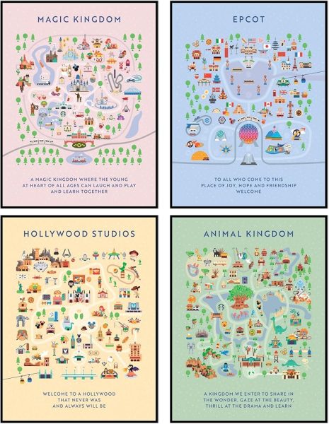 Finally, we have this set of four that features each of the four Disney World parks. There’s simile imagery that adds the perfect amount of Disney to your walls. I think they would be especially cute in a nursery, but hey, adults deserve their favorite Disney Parks represented, too!