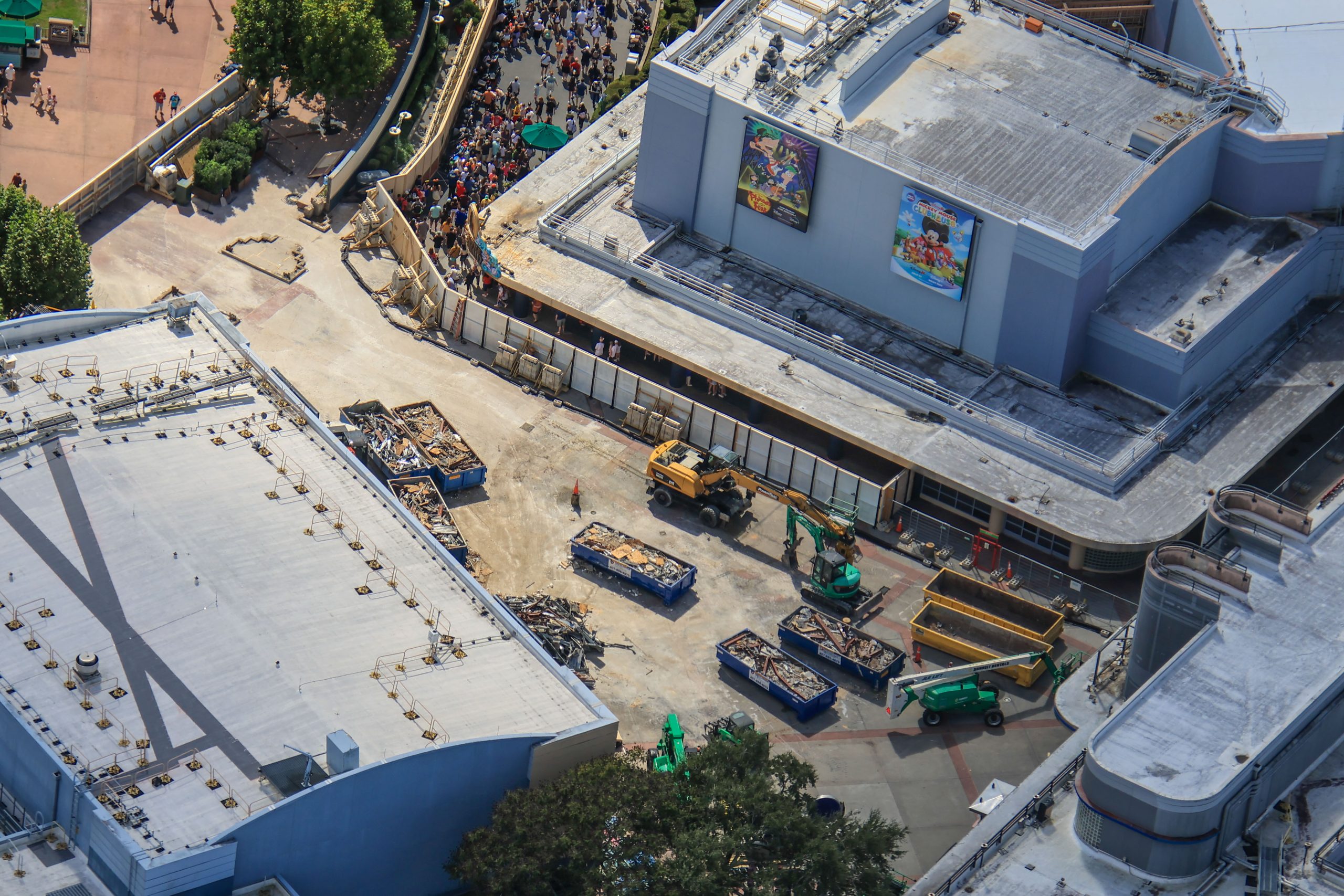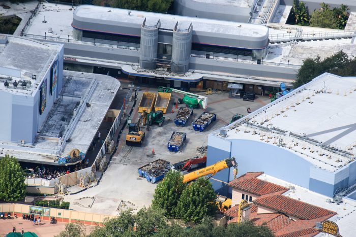 Thanks to @bioreconstruct, we have new photos of what’s happening behind the construction walls of what used to be Animation Courtyard. Right now, it looks like there is a LOT of demolition happening. A lot of construction equipment is on site, and there is a ton of debris filling up dumpsters.