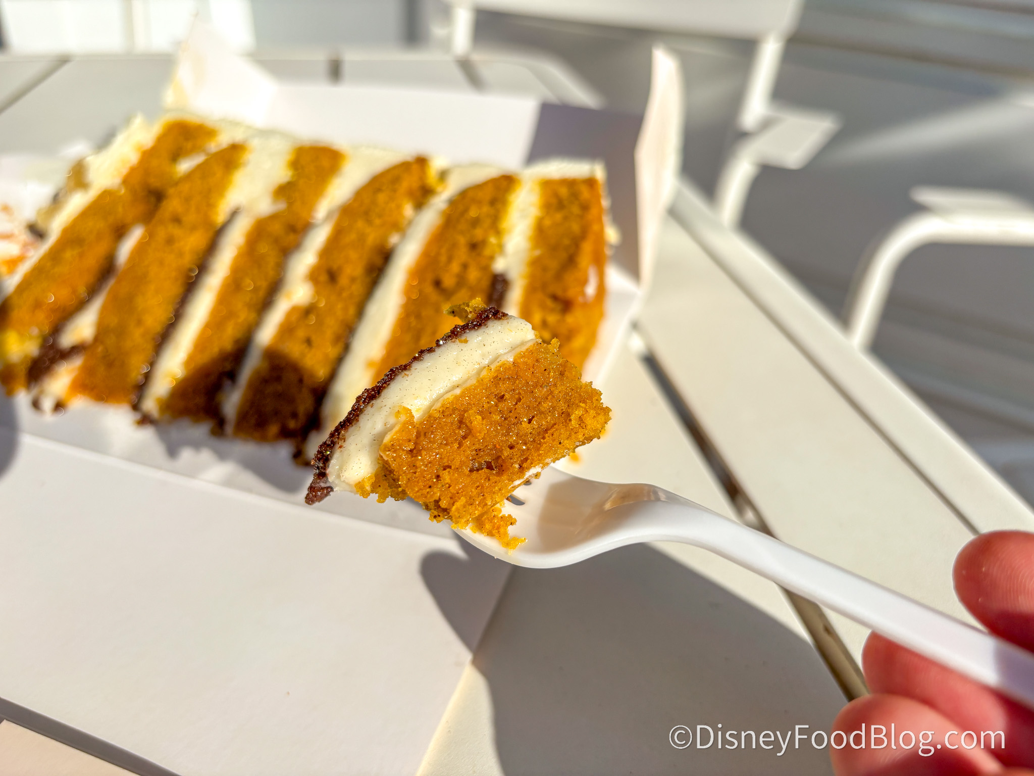 We’re adding another cheesecake and cake slice to our dessert list, this time from the Cake Bake Shop Bakery at Disney’s BoardWalk. You can walk there from the International Gateway entrance in EPCOT. We had perfect fall flavors all in cake form, and you’re going to love it!