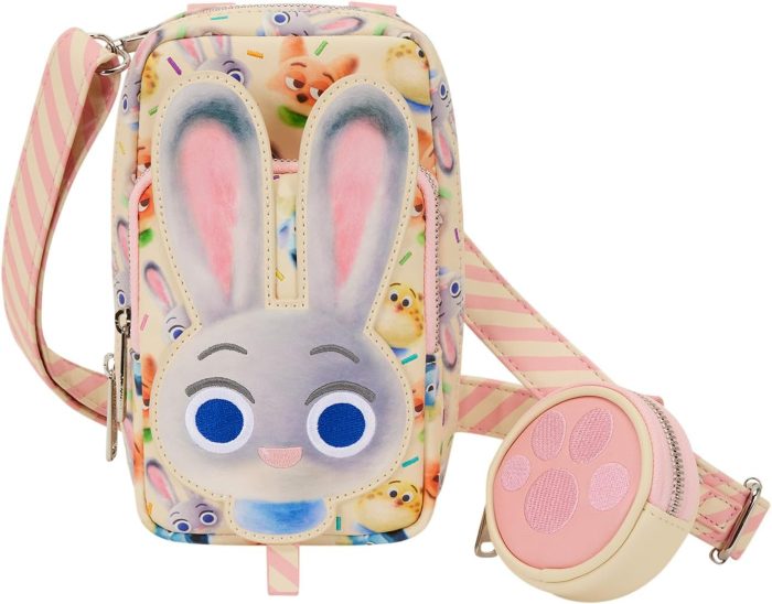 This bag is so cute, it made us gasp out loud! The crossbody bag features embroidered sprinkles all over with a familiar face in the center. Officer Clawhauser also looks like he’s made of cotton candy, and he uses faux fur, adding extra texture! You can detach the crossbody strap if you want it to be a shoulder bag instead.