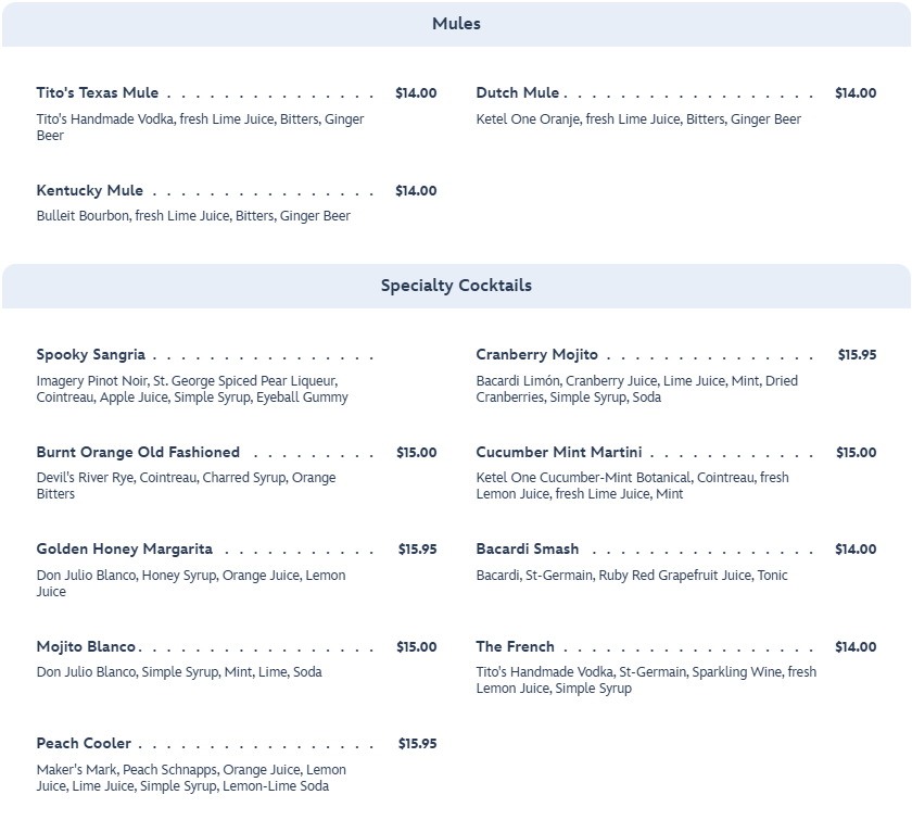 If beer isn’t really your thing, City Works also has a menu of Mules and Specialty Cocktails.