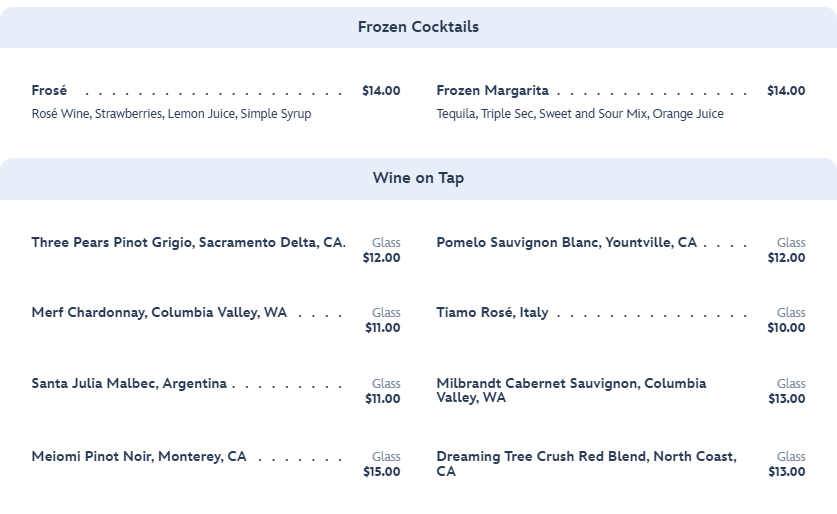 As well as Frozen Cocktails and Wine on Tap.