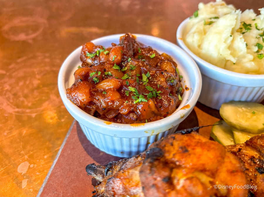 The beans are on the sweeter side with a hint of spice to them. They are like baked beans taken to another level. The sauce was sticky and flavorful, the beans were soft, and there was also some bacon added in. They also had a bit of smokiness to them.