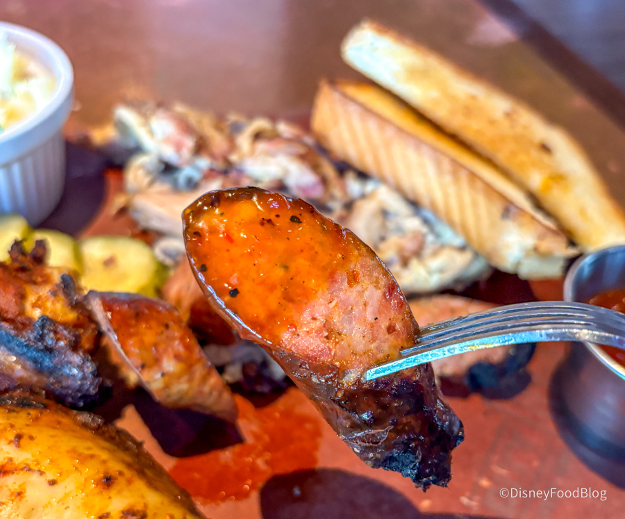 The hot link was our favorite of the meats. It had a good snap to it and was somewhat juicy. It had some spices in the meat that gave it a bit of a kick. We also really like the slight char it had on the outside. Added a slight bit of texture to the hot link.