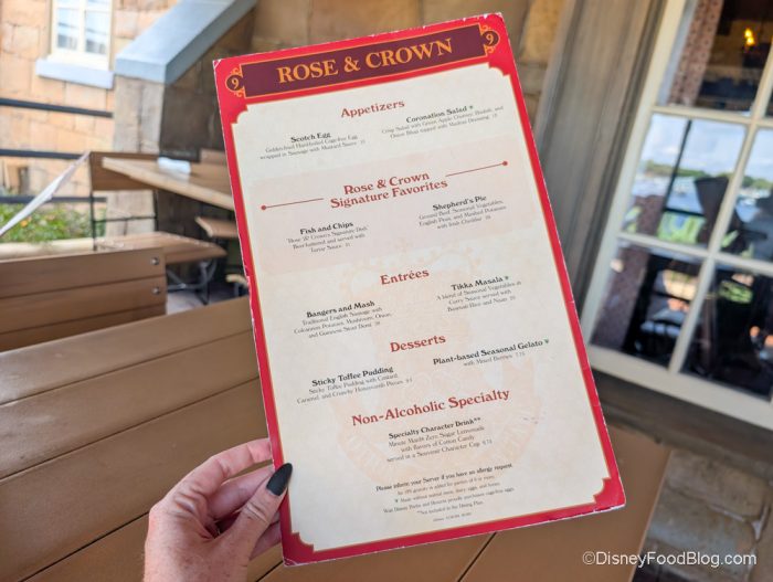 As we previously stated, you’ll find Rose and Crown in the U.K. Pavilion in the World Showcase. You’ve probably noticed the pub in that pavilion, but there’s also a restaurant attached to that pub where you can dine on some British favorites.