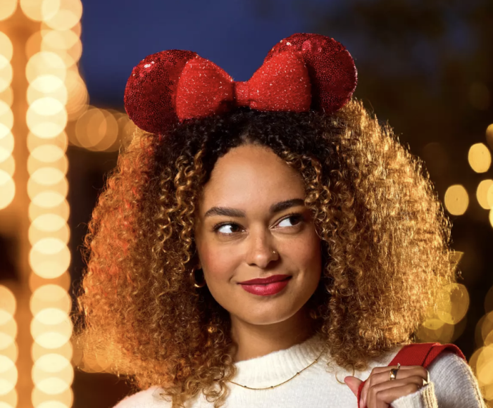 Now if you are looking for something that yells the holidays, but that you can also wear year-round if you just love the color red, the Red Minnie Mouse Sequined Ears are calling your name. The ears themselves have sequins all over, while the bow in the middle is made of a slightly sparkly red felt. Can you imagine wearing them in all your Disney holiday photos? Imagine how cute they’ll look!