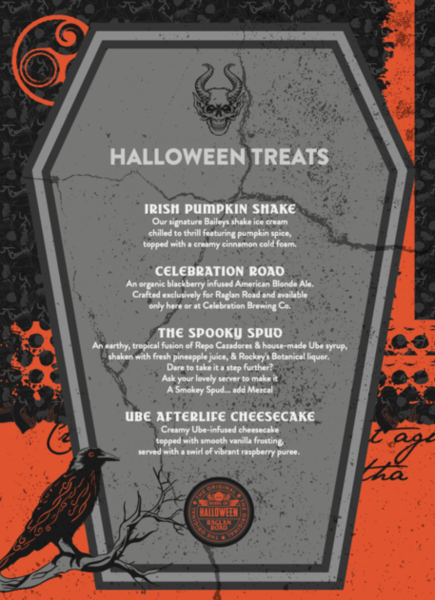 Raglan Road now has a brand-new Halloween treat menu, and all the items are being served now through Halloween!