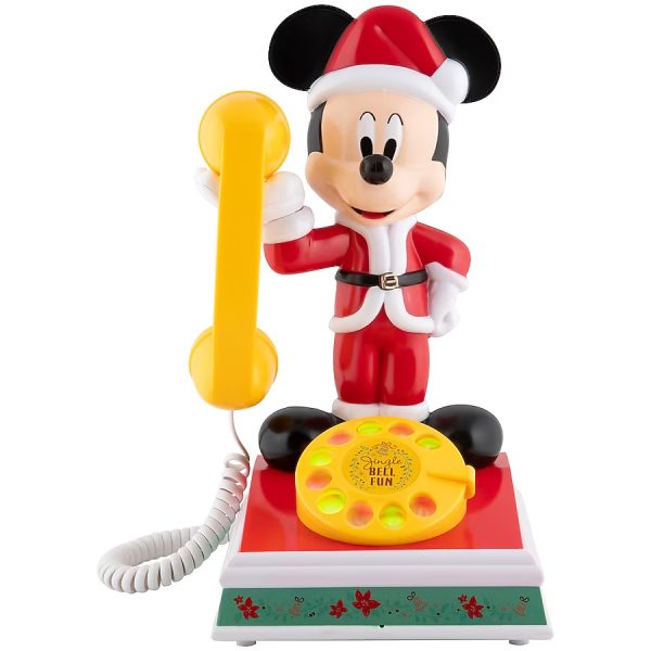 We also found this Mickey Musical Phone Christmas Figurine! Disney fans will love this vintage-style telephone with a Mickey Mouse figure and a lighted dial pad. Turn the dial or pick up the receiver to hear Mickey Mouse Christmas messages in true character voice. Styled in red, green, and yellow, the Mickey Mouse holiday hotline makes a spectacular Christmas gift or decorative accent.