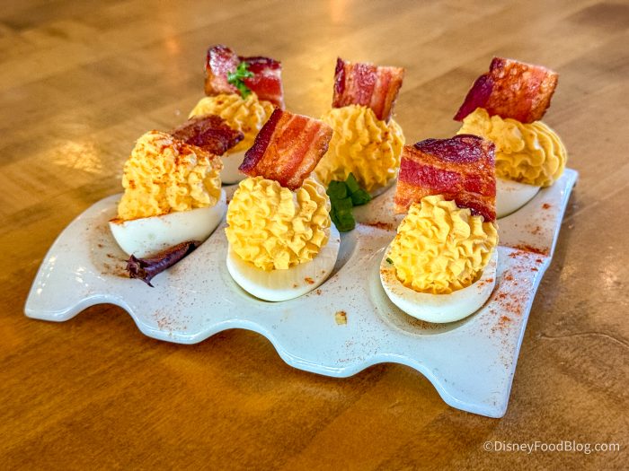 There was a LOT to eat here, but we weren’t complaining! We started out with the Church Lady Deviled Eggs for $14, which are Southern-style deviled eggs. These had a great tang to the yolk of the eggs, and the eggwhites had that great rubbery texture that is iconic to deviled eggs, but were also easy to bite through.