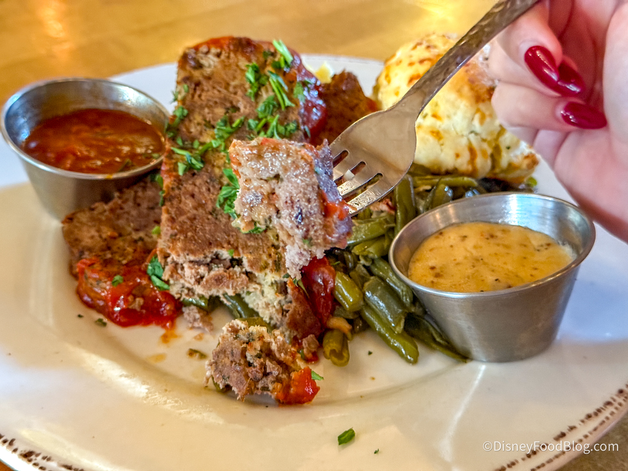 Moving onto the entrees, we got the NEW Meatloaf Main Plate for $30, which is House-made meatloaf served with creamy mashed potatoes, Southern green beans, and a cheddar drop biscuit. This was a pretty standard, run-of-the-mill meatloaf, but we wouldn’t choose it over any of the chicken options here, since chicken is what this restaurant is really known for.